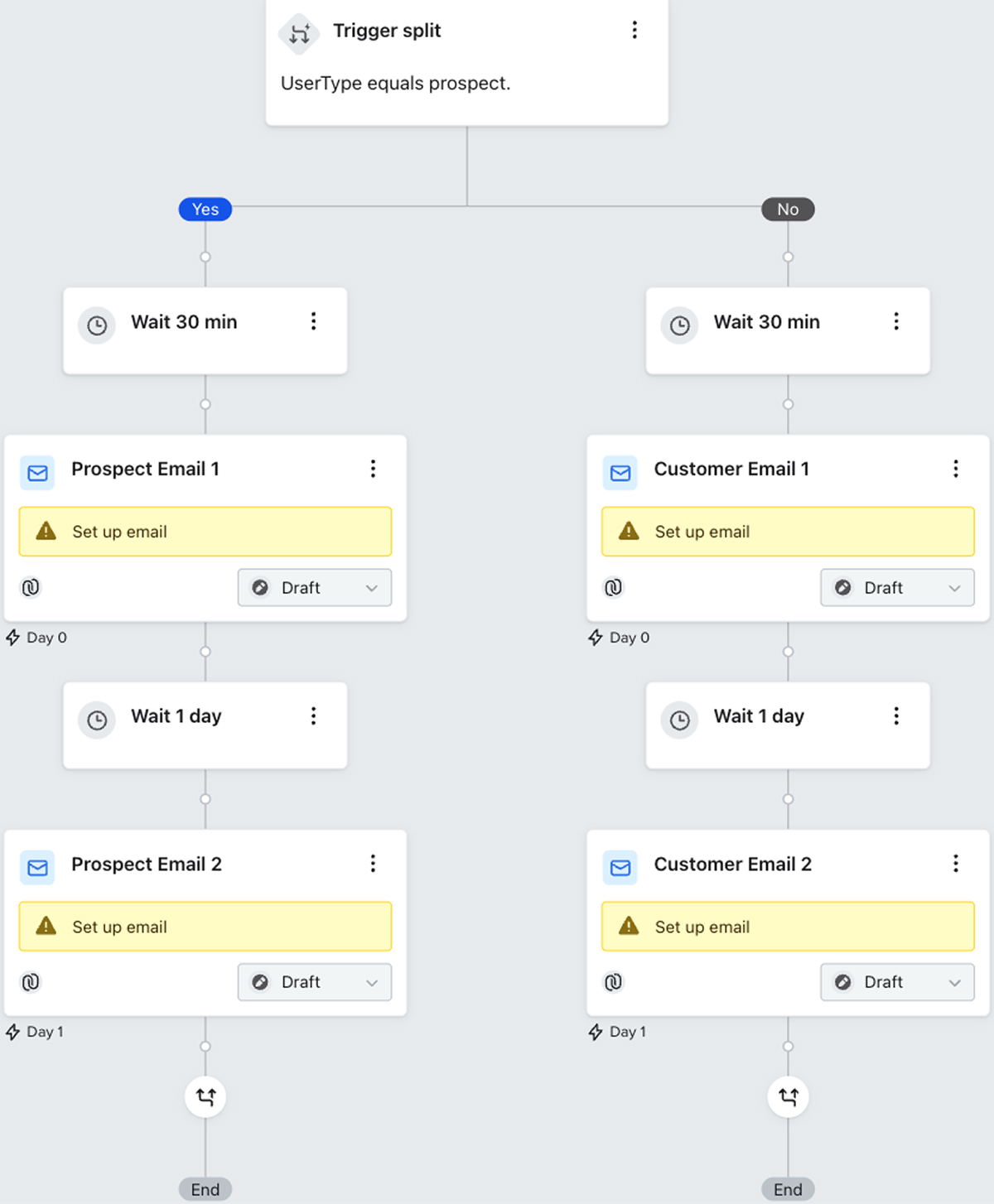 | Prospect Path (2 emails) | Customer Path (2 emails) |