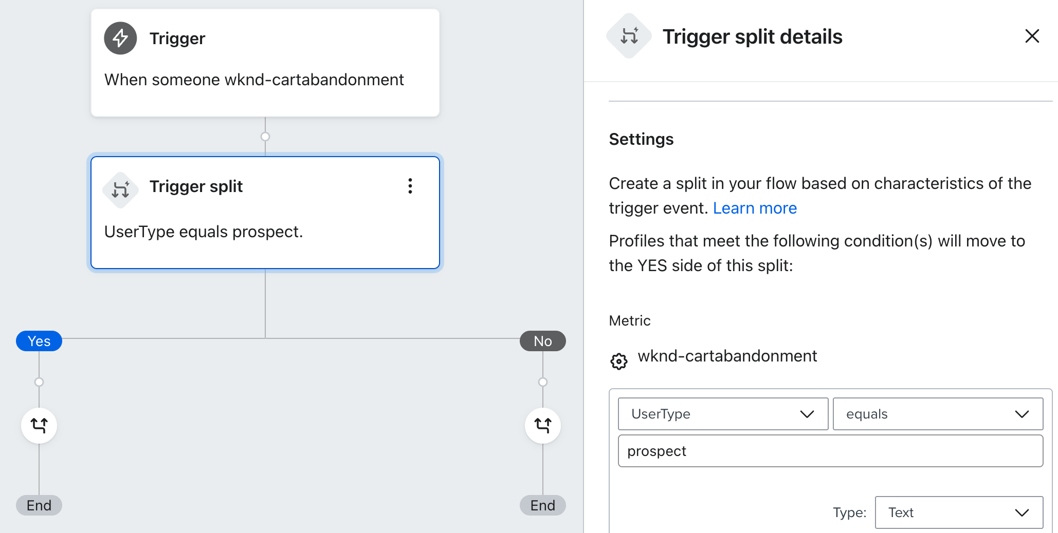 UserTypeequalsprospect - After clicking Save, your flow will update to show a Yes/No split