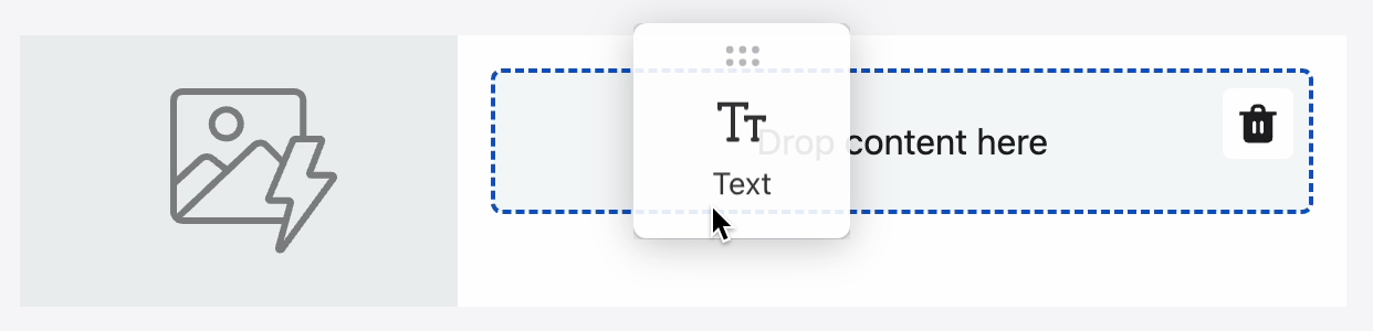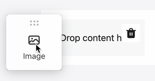 - From the Content panel, drag an Image block into the left column.