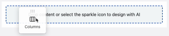 - Now you'll divide the Section into two columns, allowing each dynamic product's image and name to sit side-by-side. From the Content panel, drag a Columns block into the Section: